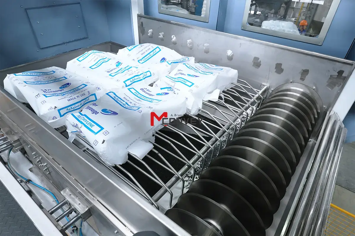 חברה Mconvey מודעת לכך, ולכן אין זה מפתיע שהיא השיקה לאחרונה מערכת אוטומטית חדשה לפריקת משטחים וריקון שקים של 25 ק"ג בתפוקות עבודה גבוהות. המערכת מגיעה לתפוקה של 15-18 טון בשעה – פי ארבע מפתרונות אלטרנטיביים.