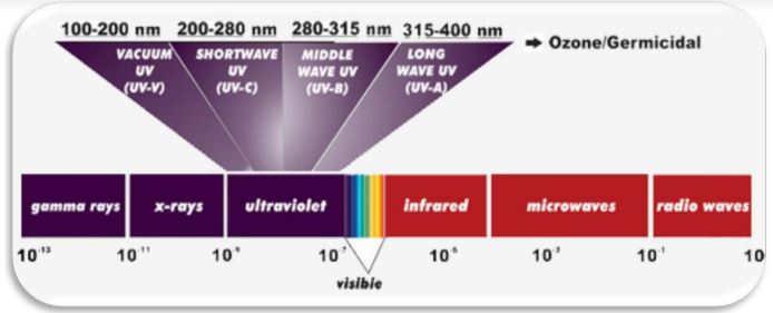תמונה 1: ספקטרום השמש ובפרט ספקטרום ה-UV