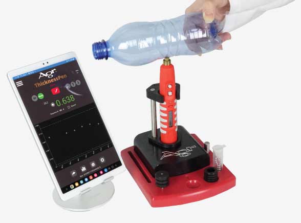 חברת AGR לא שוקטת על שמריה, למרות הבשורות הטובות. בתערוכת הציוד והטכנולוגיה לתעשיית הפלסטיק NPE 2024, הציגה החברה מספר פתרונות מתקדמים מסל המוצרים שלה. ביניהם ה-ThicknessPen, מכשיר נייד למדידת עובי של יריעות, מכלים ובקבוקים, שהושק לראשונה שנה שעברה. זהו מכשיר קשיח ועמיד ללכלוך ומים שמתאים לעבודה בכל התנאים במעבדה ובאולם הייצור. הייחוד של העט הוא ביכולת שלו לבצע מדידות בשני מצבי עבודה. במצב המדידה הדו צדדית, נעשה שימוש בכדור מגנטי יחיד אשר ממוגנט לעט בצד השני של הפילם או המיכל. במצב זה העט מודד עוביים של 0-8 מ"מ עם דיוק של ±2.5%, ומציע רמת דיוק המשתווה או עולה על מכשירים מגנטים מתחרים. המכשיר מגיע עם תחנת העגינה שכוללת לחצן לרגל, למקרים שהידיים לא פנויות.