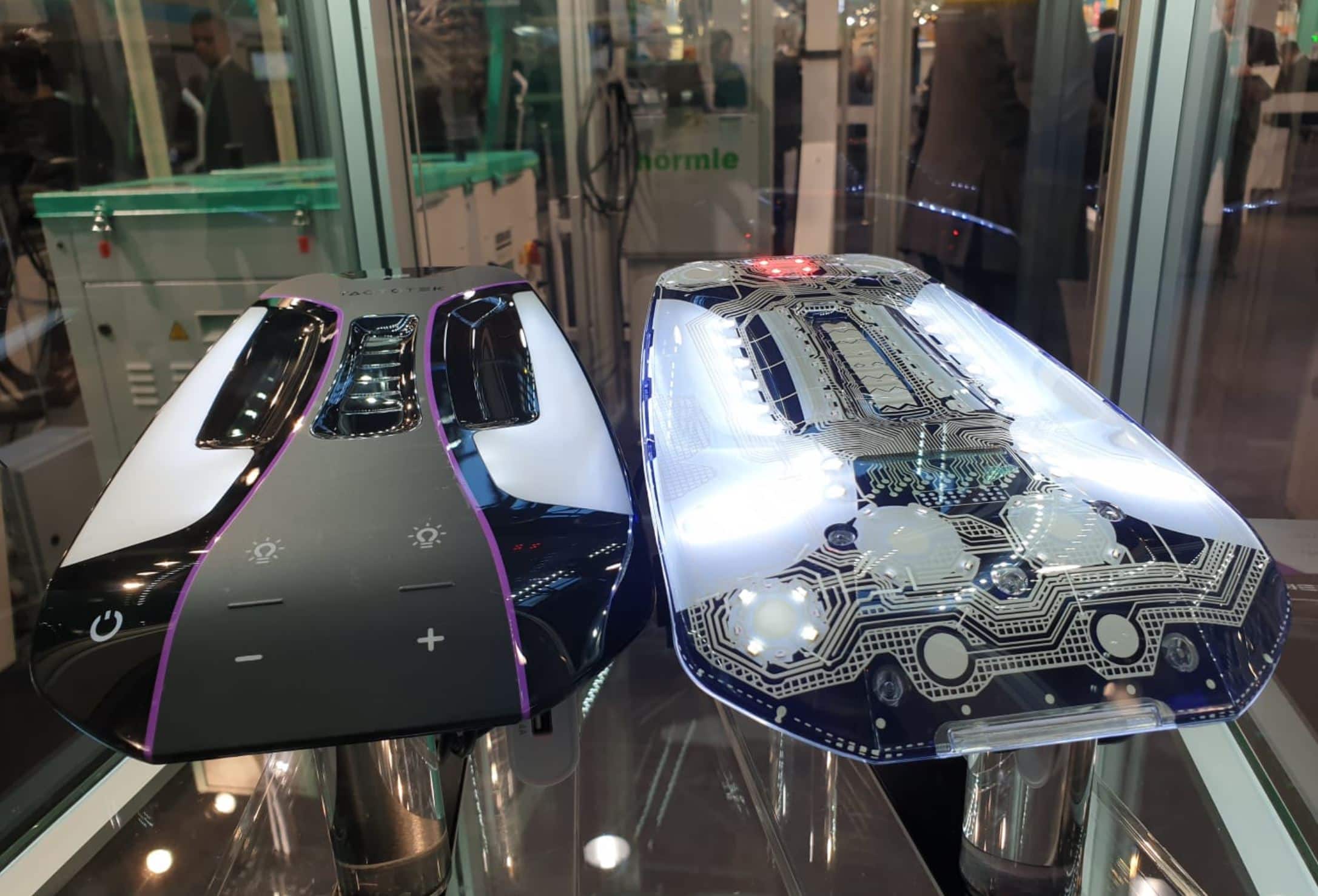 תמונה 3: יישומים מורכבים לתעשיית הרכב. משלבים אלקטרוניקה: לוח PCB גמיש, עליו הותקנו רכיבים חשמליים (נורות LED) שעבר פורמינג ונכנס להזרקה.