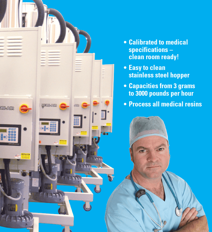 טכנולוגיית ייבוש חומרי הגלם של Dri-Air שומרת על תנאי העבודה בחדר הנקי ומקטינה את צריכת האנרגיה. מערכת הבקרה החדשה, SmartTouch מתאימה לתעשייה 4.0 מאפשרים שליטה טובה במאפייני הייבוש