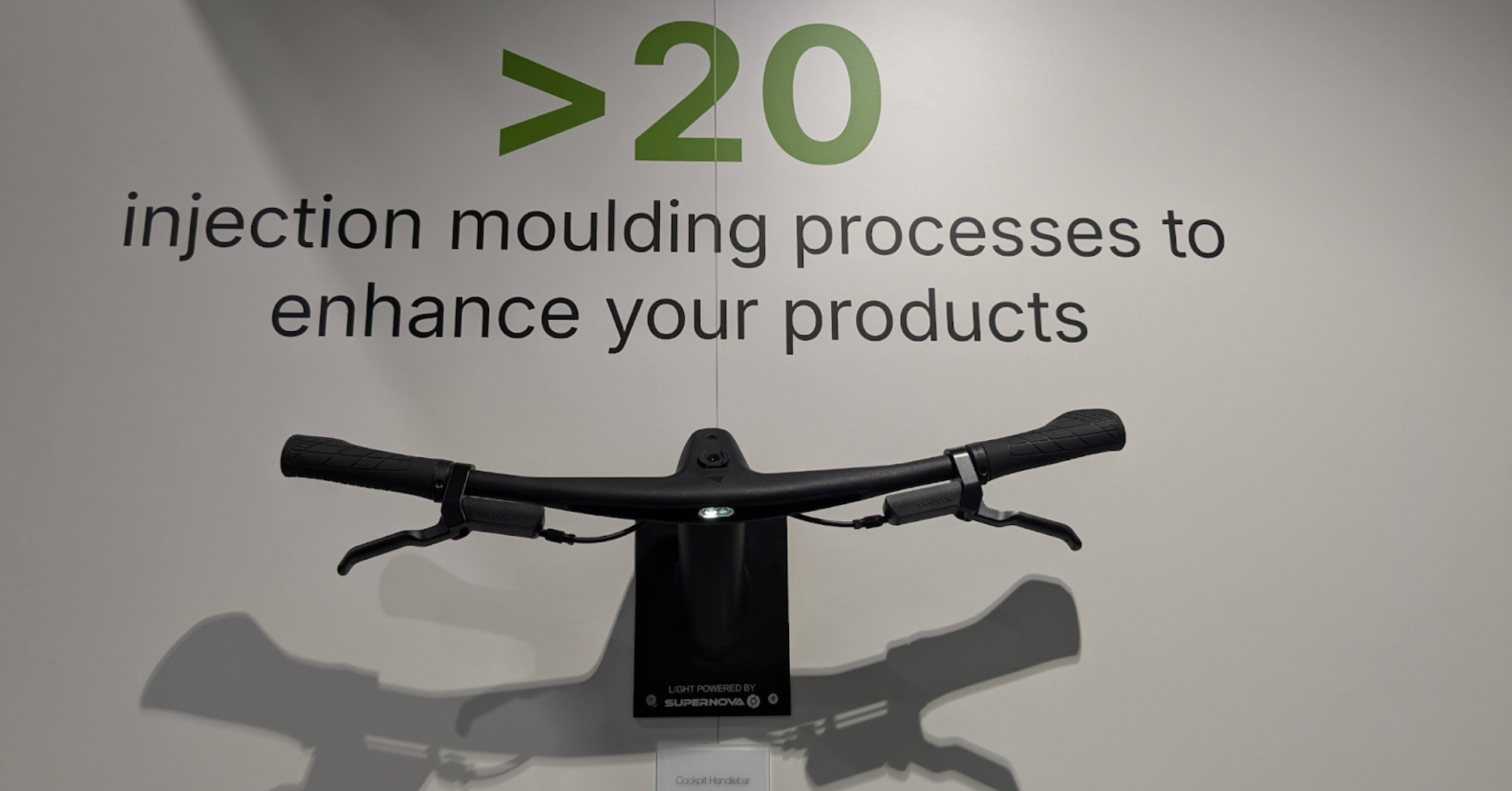 תצוגה מעניינת במיוחד הייתה של תא אוטומציה ששימש לייצור כידון אופניים חלול המחוזק בתוך התבנית עם רצועות של סיבי פחמן חד כיווניות. לאחר החיזוק מתבצעת הזרקה בטכנולוגיית Fluidmelt – גז משמש לריקון הליבה ליצירת הכידון החלול. בניגוד לעבר, ההיתך לא נזרק החוצה כפחת, אלא מוחזר מהתבנית אל הבורג לשימוש חוזר.