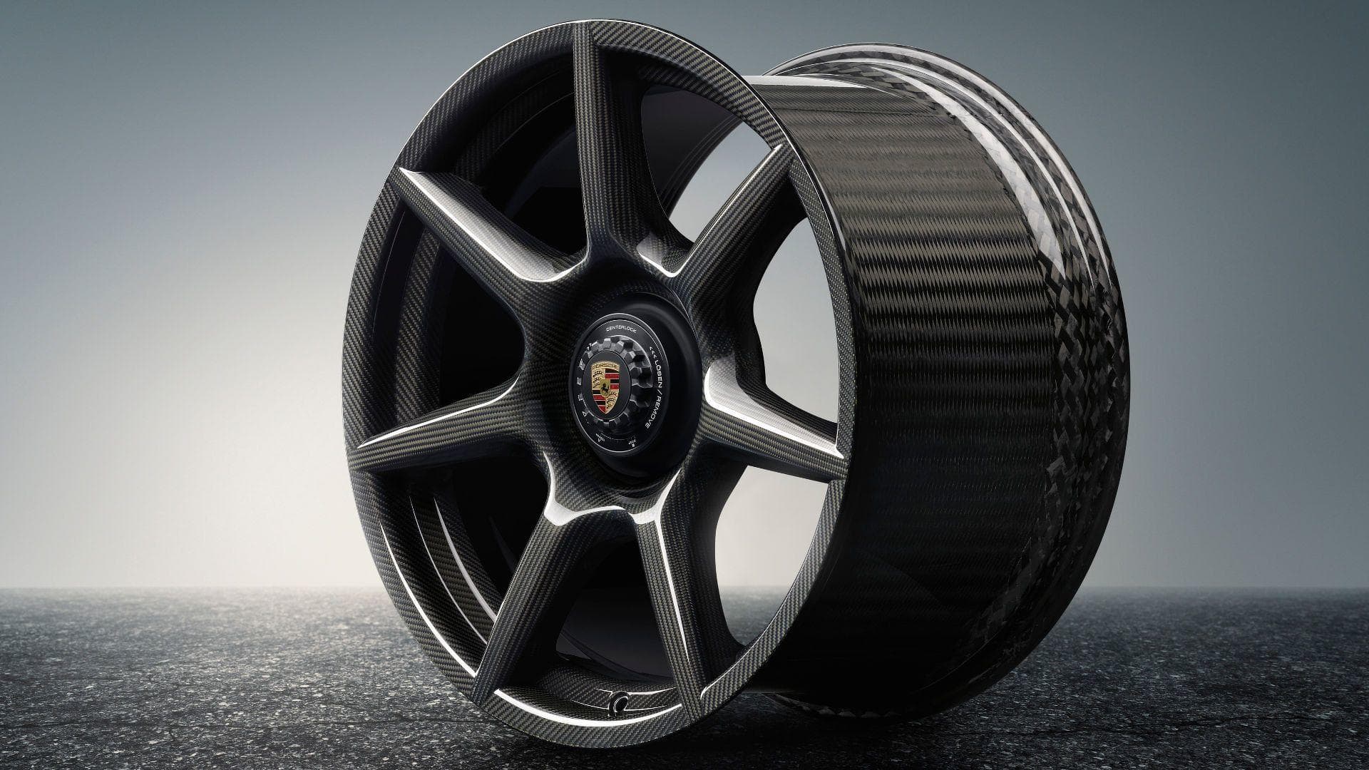 שלדת גלגל הרכב של פורש, עשויה אריג פחמן ומפגינה שיפור מכני ניכר תוך הפחתה במשקל הגלגל.