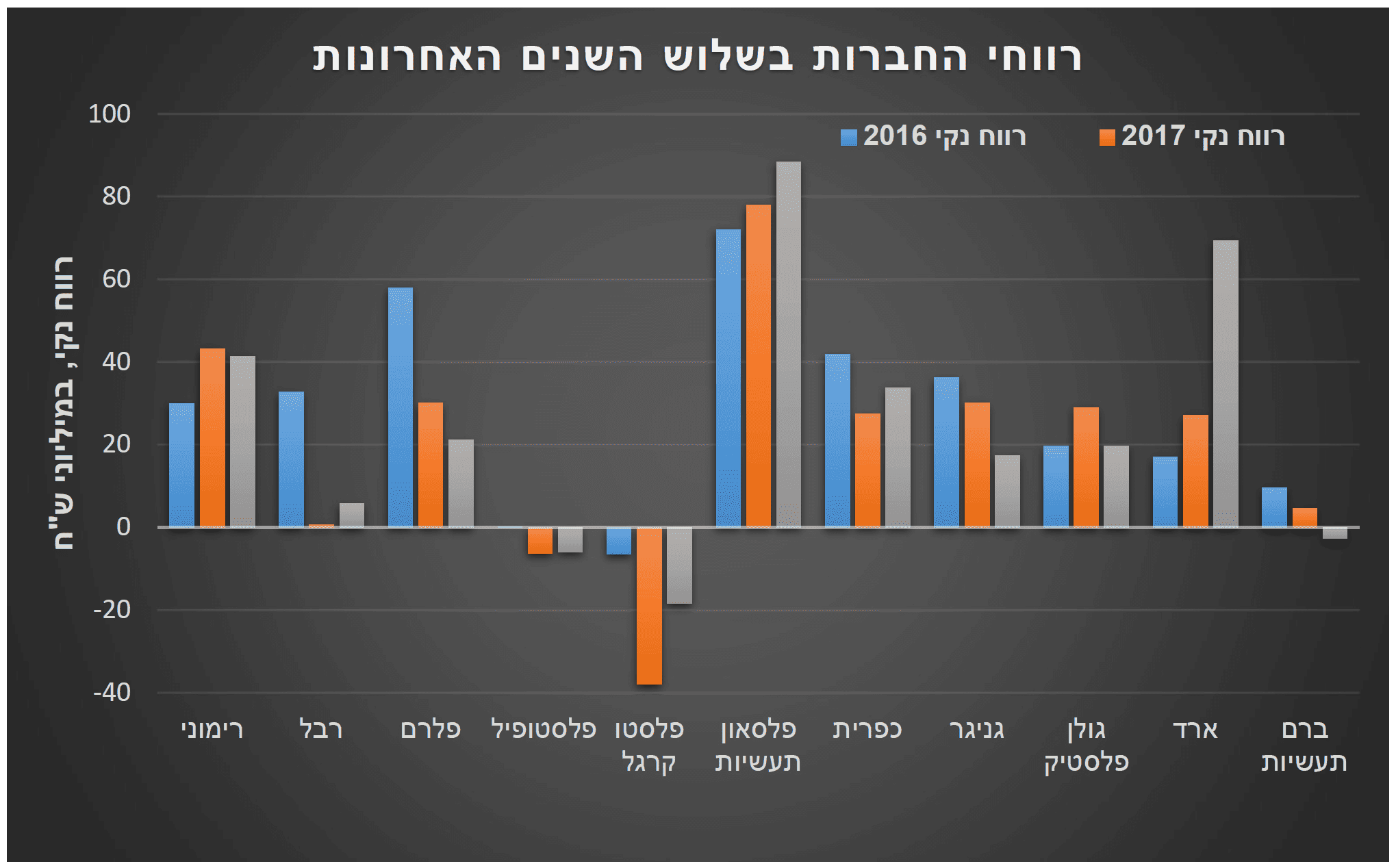 גרף 3: רווח נקי לחברות הפלסטיק הציבוריות בשלוש השנים האחרונות.