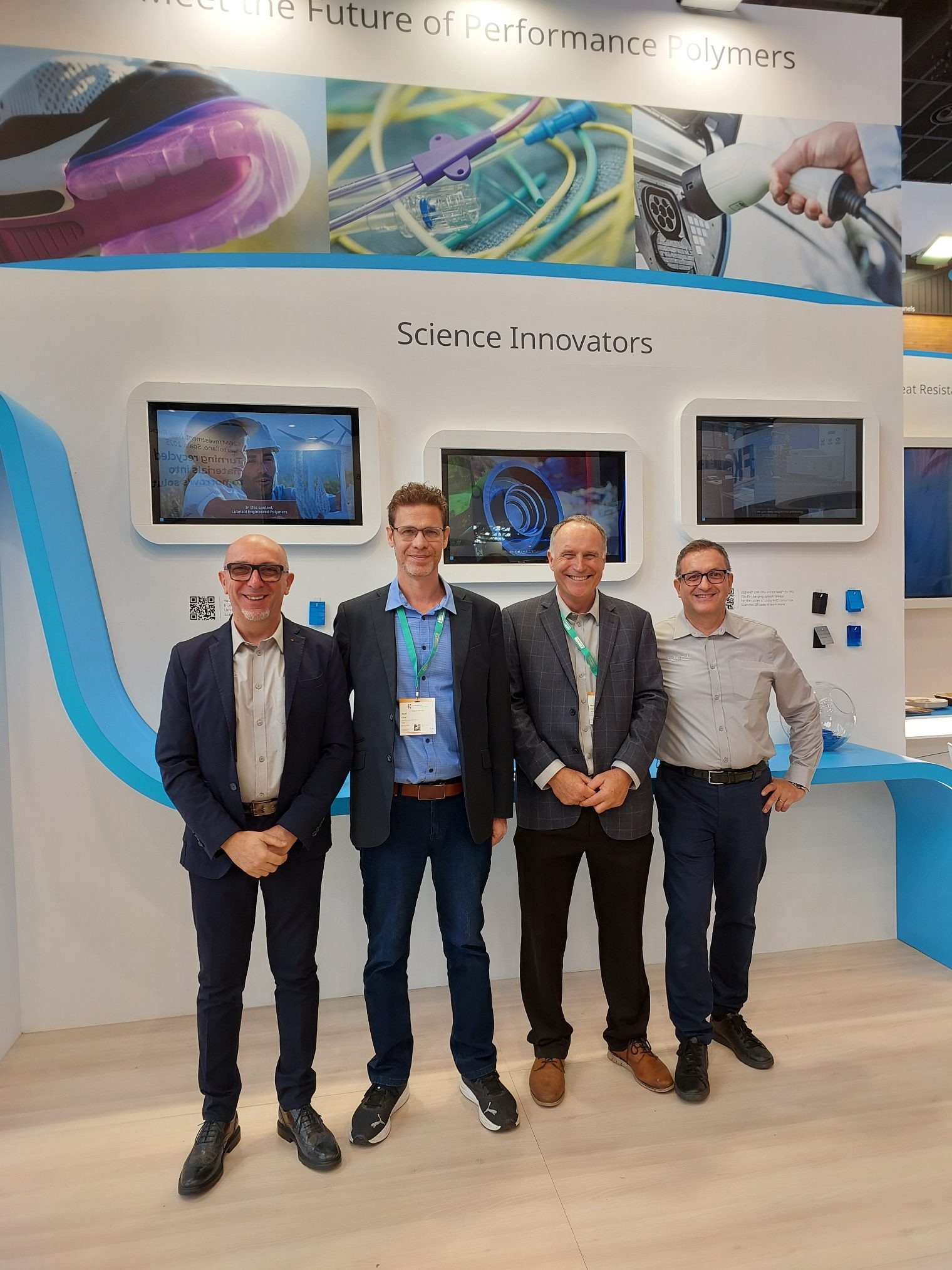 מבין המגוון הרחב של חומרי הגלם והיישומים שהוצגו בביתן החברה הגדול, בחרנו להביא את המתקדמים והמעניינים ביותר: חומרי גלם לתעשיית הרכבים החשמליים – סוללות, עמדות הטענה ועמדות אגירת אנרגיה. פתרונות אלו מחליפים מתכות ומאפשרים טווחים גבוהים יותר לנסיעה ומשקלים קלים יותר של מערכי הסוללה, עד 30 אחוזים של חיסכון במשקל.