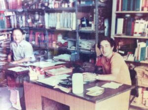 תמונה 2: אברהם (יונצ'י) פלורנטל ובנו אליהו פלורנטל במשרדי חברת פלורמא הראשונים בשנת 1974.